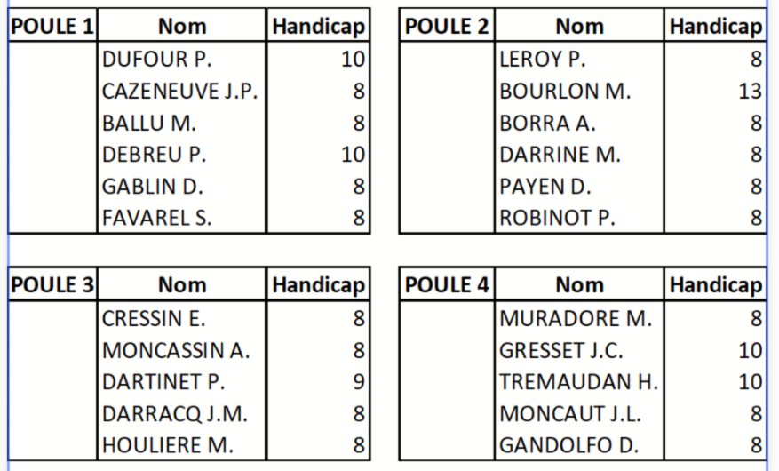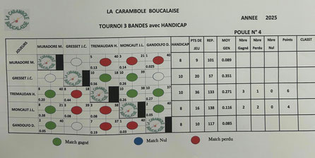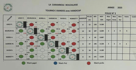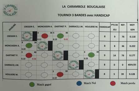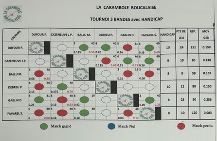 Notre tournoi 3 bandes se déroulera entre le 1er Octobre et le samedi 13 Décembre. Tirage au sort du jeudi 25 septembre ci-dessous.